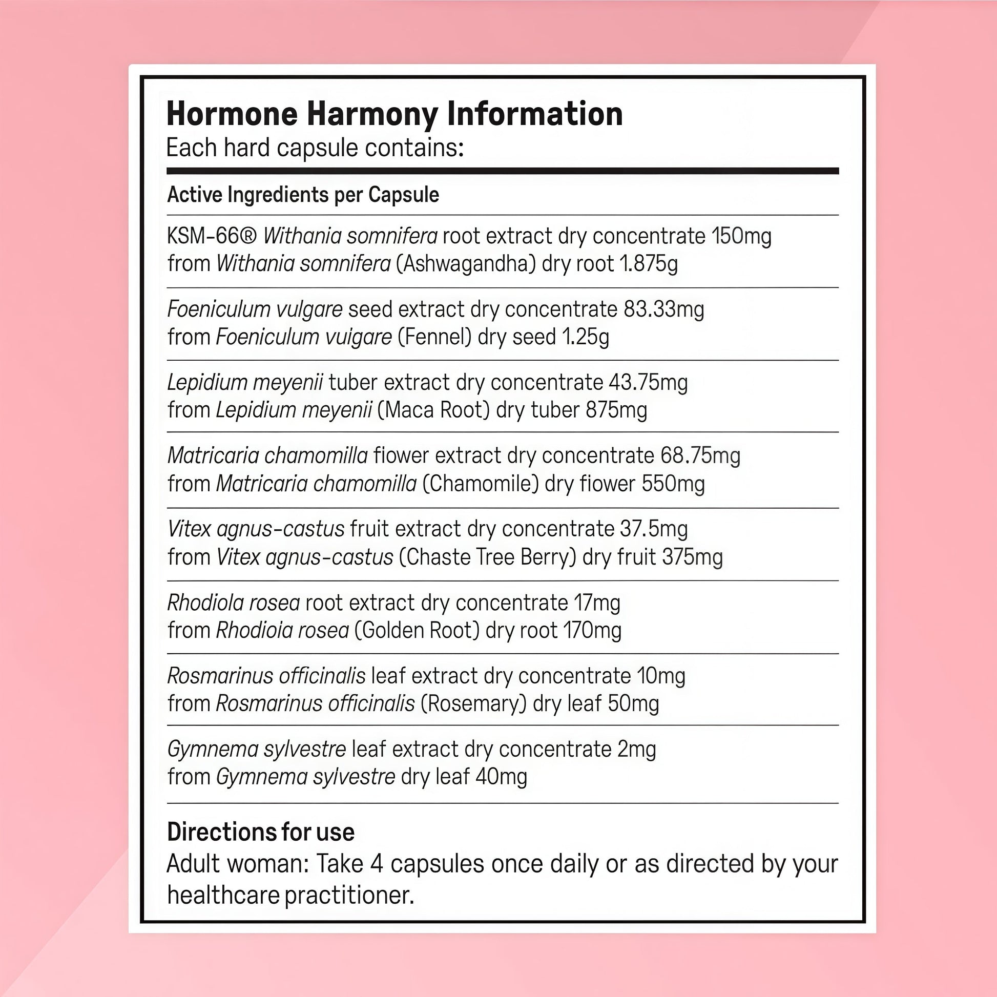 Hormone Harmony is versatile; you can take the daily capsules anytime. Since everyone’s body and schedule are unique, find what works best for you. If you don’t see improvements in a few weeks, try adjusting when you take the capsules.
